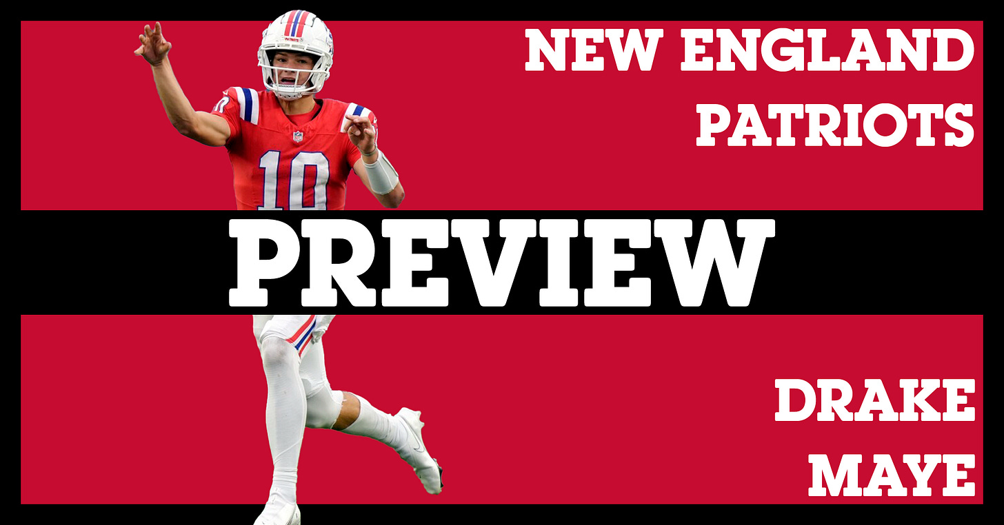 2025 should be much different. To start, Josh McDaniels is back in Foxborough as the play-caller, which should yield better results. If you glance up at the projected starters, you'll see that there are at least six new starters in 2025 that should present significant upgrades. Giving Drake Maye a workable offensive line and average receivers should allow him to flash more of the high potential that got him drafted 3rd overall.