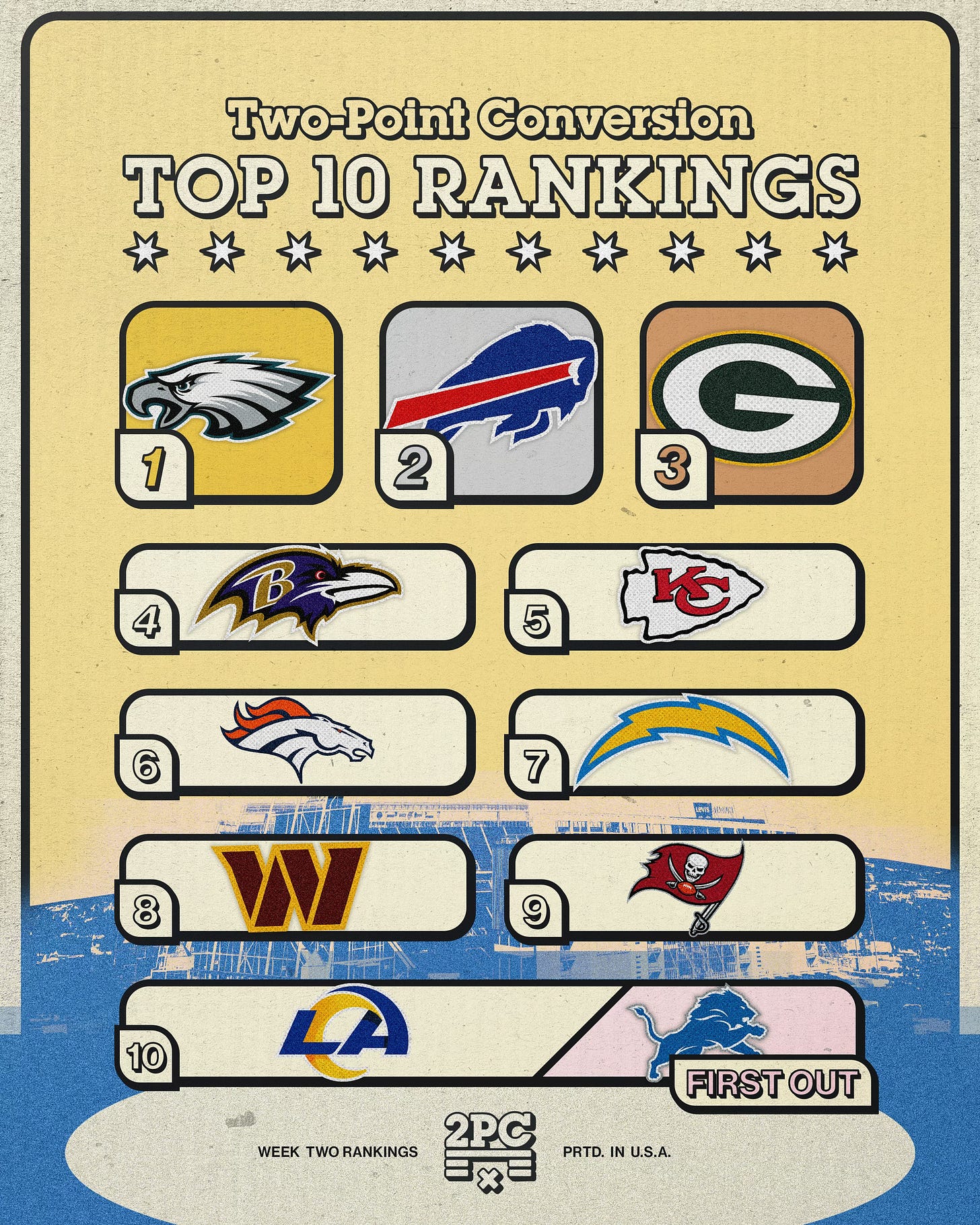 After a weird and exciting first week of games, here is where the 2PC Top-10 stands prior to Week 2.
